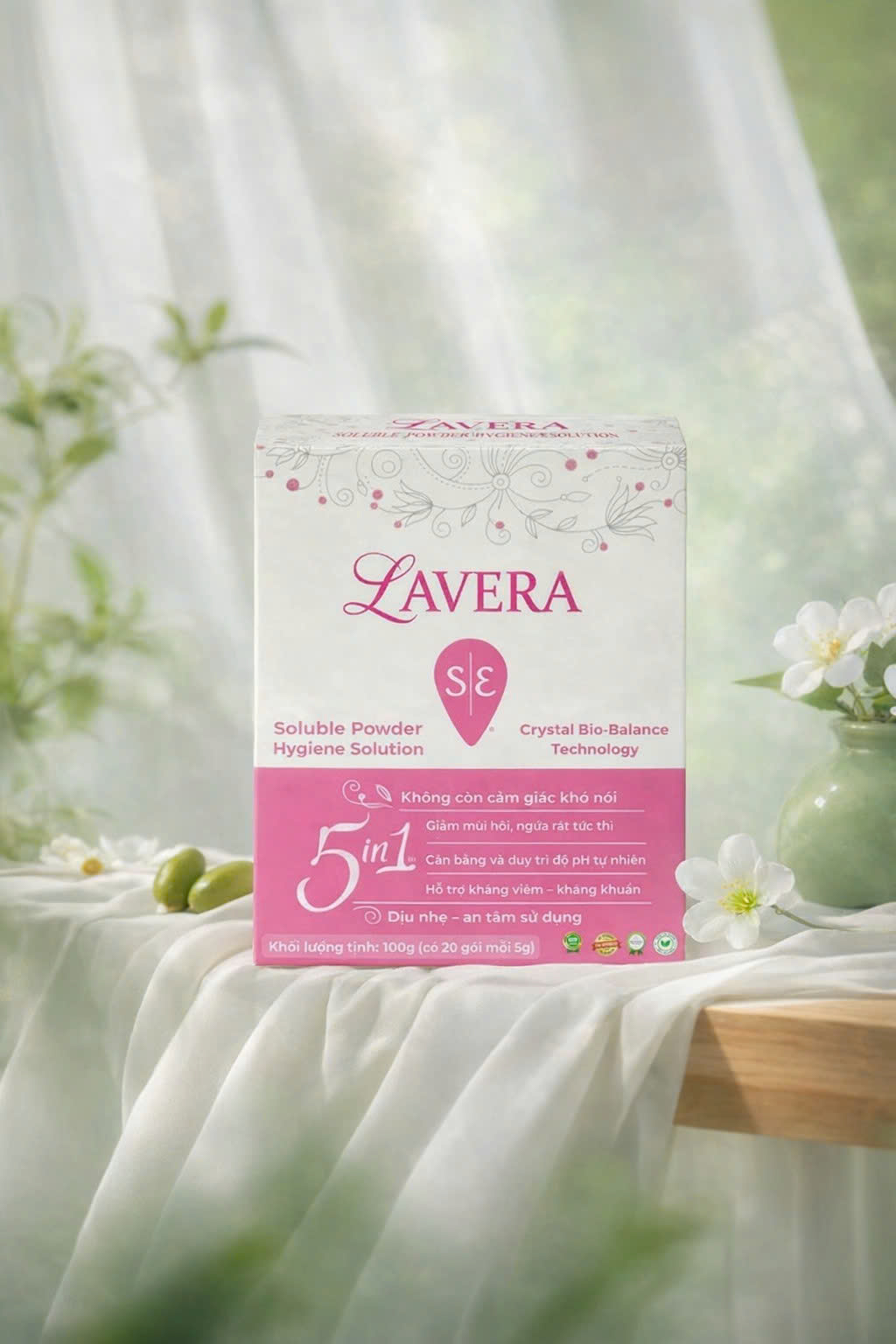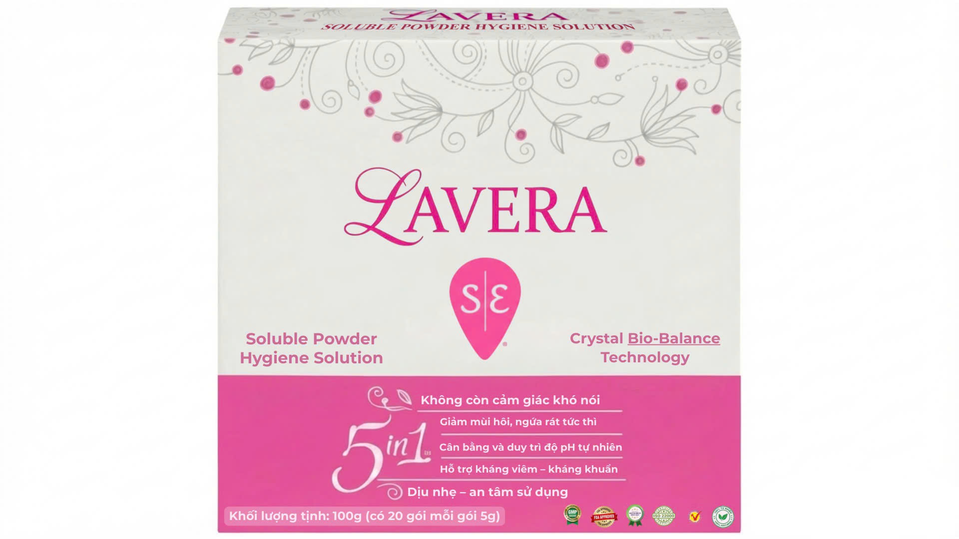 Dung dịch vệ sinh phụ khoa LAVERA sử dụng công nghệ kết tinh thành phần thảo dược thành hoạt chất được nghiên cứu nhằm hỗ trợ giải quyết trực tiếp các vấn đề phụ khoa thường gặp, giúp vùng kín sạch – khô – thoáng – dễ chịu ngay từ những lần sử dụng đầu tiên.